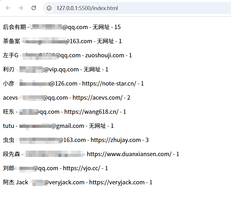 凭借我薄弱的js基础,最终效果还是实现了,打开网页之后,就出现了所有访客以及对应的评论数量。